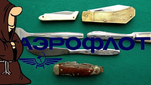 Складные ножи СССР с логотипом Аэрофлот, столовые ножи Аэрофлот СССР