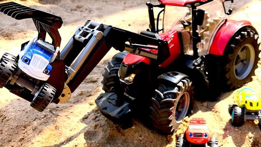 Вспыш, Крушила и машинки Bruder. Большой красный трактор, стройка и домик. Игры в песке