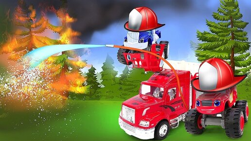 Чудо МАШИНКИ Вспыш и Крушила устроили пожар. Пожарная машина едет на вызов. Видео для детей