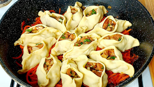Манты без мантоварки на одной сковородке сразу с подливкое. На обед или на ужин