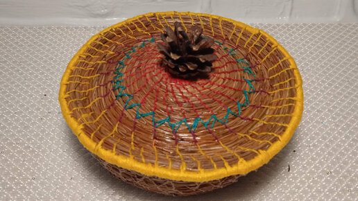 Доделала миску из кедровых иголок и крышку к ней.
