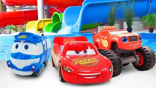 Машинки в аквапарке — Молния Маквин, Вспыш и Роботы-поезда — Видео для детей, серии подряд