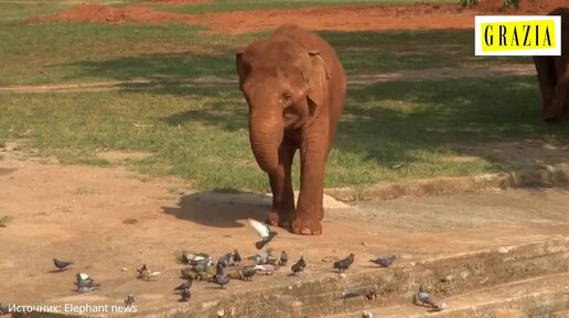 «С барского хобота!» Радушная СЛОНИХА решила поделиться едой со стаей голубей — неожиданная дружба!