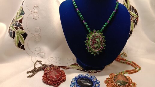 Варианты украшений с кабошонами из натурального камня одного размера. Авторские украшения