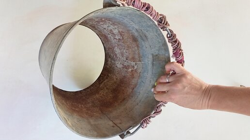 Из старого ненужного ведра сделала удивительно красивую поделку для дома.