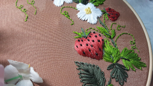 Вышивка 3d клубника🍓Мастер класс.Embroidery 3d strawberry.