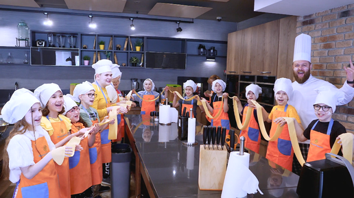 Вкусный Выпускной 4 класса в кулинарной студии Вкусотеррия - дети сами готовили салат "Цезарь с курицей", мохито и пасту "Карбонару" - видео