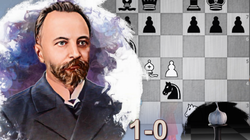 Чигорин проводит коварный греческий подарок, гоняет черного короля Розенкранца по доске, выгодно жертвуя - мат в доигрывании обеспечен