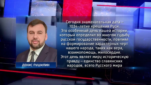Денис Пушилин поздравил жителей Республики с 1034-летием крещения Руси. Актуально. 28.07.2022