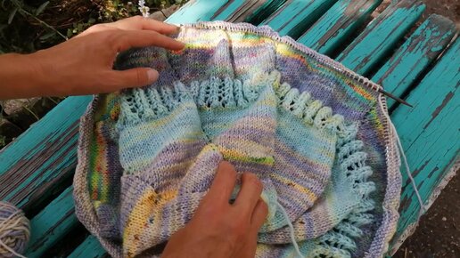 Ажурный узор укороченными рядами. Шаль Галактика, часть 6