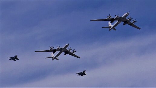 Бомбардировщики и истребители пролетели в небе над Невой, Санкт-Петербург, 28 июля 2022.