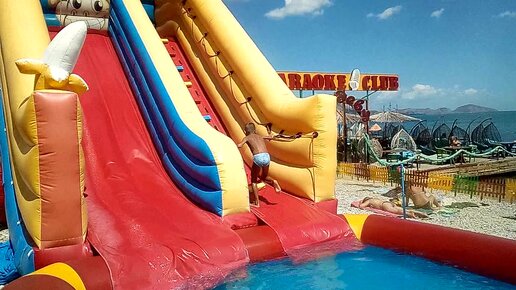 В Крымский зной или в море сидеть, или на водные аттракционы идти. Максимка на водной горке