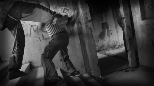 На лестнице. От прямого удара ногой. Нападающий вверху. В.Н.Крючков