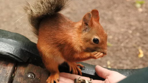 Белка очень увлеченно грызет семечки