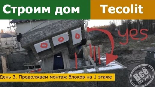 Строим дом из блоков Tecolit. День 3. Монтаж блоков первого этажа. Все по уму.