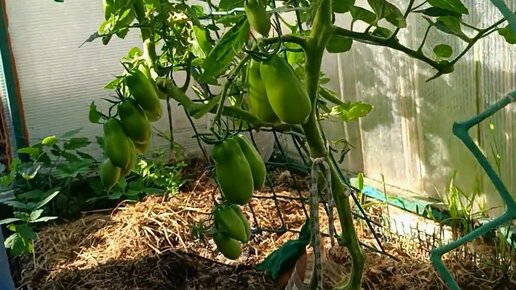 Что нужно сделать чтоб собрать большой урожай томатов — Помидоры уперлись в крышу теплицы и завязываются даже на верху.