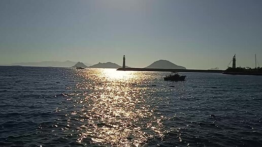 город Тургутрейс, Бодрум, Мугла, Турция, Эгейское море, пляж, порт, маяк, горы