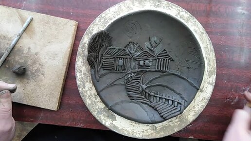 Создание образа деревенского пейзажа в жгутовой технике на тарелке