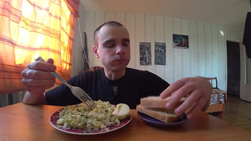 МУКБАНГ АСМР Салат ОЛИВЬЕ и ХЛЕБ с ЛУКОМ ОБЖОР Еда на камеру ASMR Mukbang #121