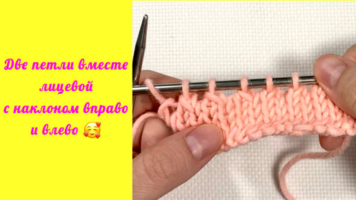 Две вместе лицевой с наклоном вправо и влево. Вязание спицами. Уроки вязания.
