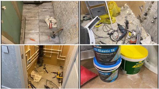 ВЛОГ: 3,4,5 день ремонта в ванной комнате и туалете! Начали выкладывать плитку.