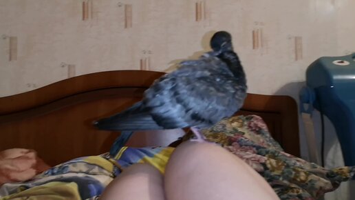 Птенец прилетет ко мне на кровать, сел на ноги, хочет общаться.... 🤗🐦
