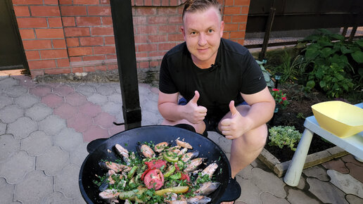 Форель (красная рыба) с овощами на садже
