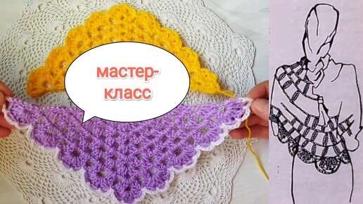 Шаль крючком в форме полукруга для начинающих.