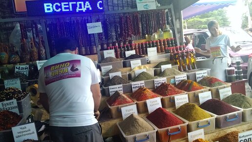 Пицунда. Рынок. Покупаю приправы у Армена и Аревик