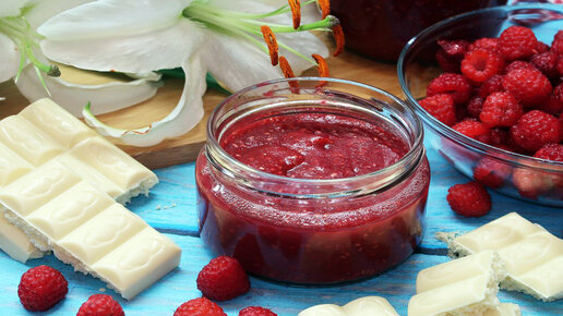 Малиновый джем с белым шоколадом. Очень вкусное варенье из малины. Изысканный малиновый десерт
