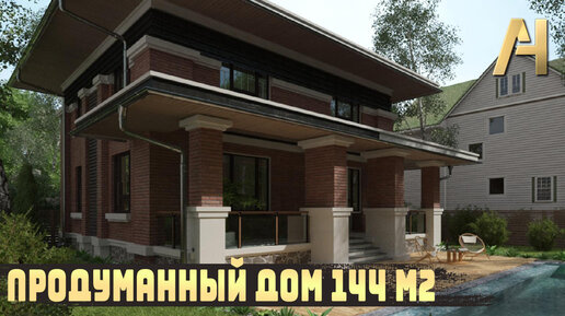 Вдохновляющий дом в стиле Райта с продуманной планировкой 144 м2. Проект дома с террасой и бассейном