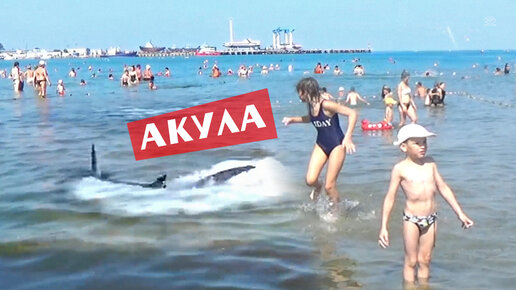 Дельфин или акула охотится у берега в Анапе