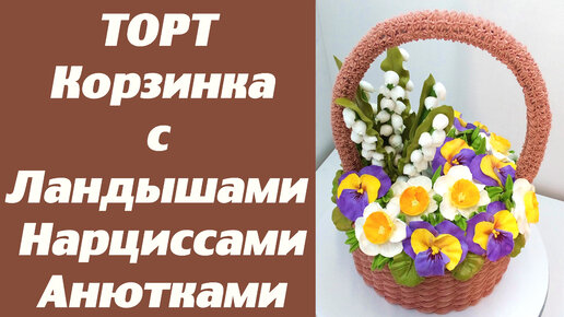 Торт Корзинка с Ландышами Нарциссами и Анютками(крем БЗК). /Cake - Basket with Lilies of the valley.