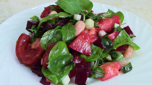 Салат овощной с фасолью и рукколой. Очень вкусный, красивый, полезный!