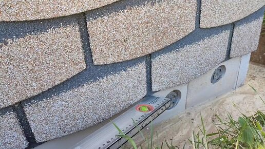 Проверка уровня горизонта при монтаже фасадной плитки Hauberk