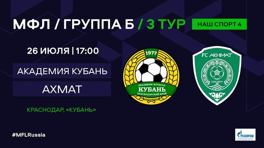 МФЛ. Академия Кубань (Краснодар) - Ахмат (Грозный). Группа Б. 3-й тур.