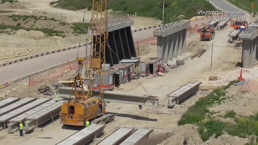 Трасса Таврида 7 этап. Монтаж балок путепровода через трассу Пироговка - Фронтовое. Май 2019