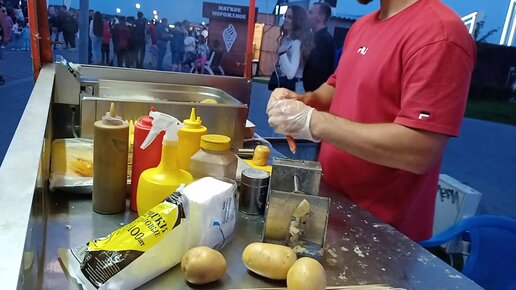 "Картофельный папа" с сосиской, полный процесс приготовления