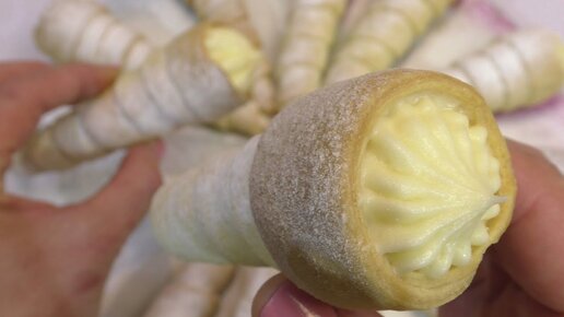 Вот Это Десерт!Слоеные трубочки со Сливочным кремом☆Сливочный Заварной Крем/Рецепт трубочек