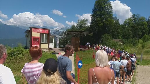 Огромная очередь на канатную дорогу Старт чемпиона и работа кабинок Восточного леса. Красная поляна. 30 июля 2022.