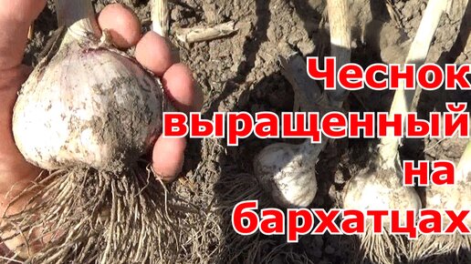 Результат урожая озимого чеснока выращенного на бархатцах.