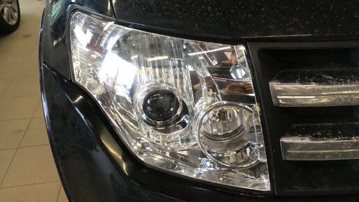 Mitsubishi Pajero 4 замена линз диодные линзы Expression тюнинг фар