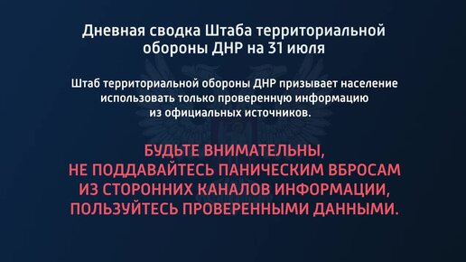Дневная сводка штаба территориальной обороны ДНР на 31 июля 2022 года