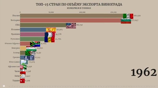 Топ-15 стран по объему экспорта винограда