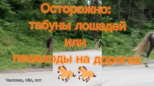 Осторожно: табун лошадей или пешеходы на дорогах.