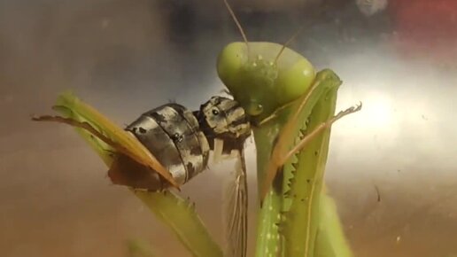 Богомол ест муху с очень неожиданной начинкой 😨
