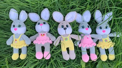 Вязаный зайчик из плюшевой пряжи. Мягкая игрушка амигуруми крючком из плюшевой пряжи.