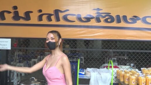 Одна девушка держит целый фастфуд прилавок с вкусной едой