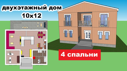 Двухэтажный дом 10 на 12м. 4 спальни, терраса. Проект дома 10х12. Планировка дома. План дома.