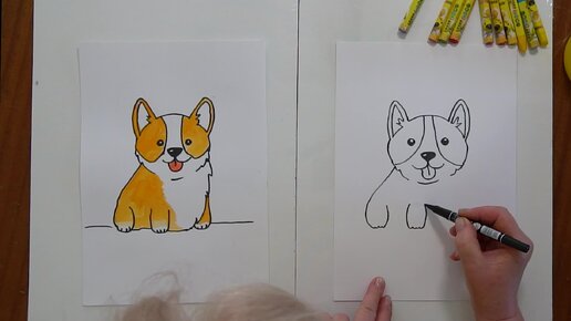 Учимся рисовать собачку \ Рисунки для детей шаг за шагом